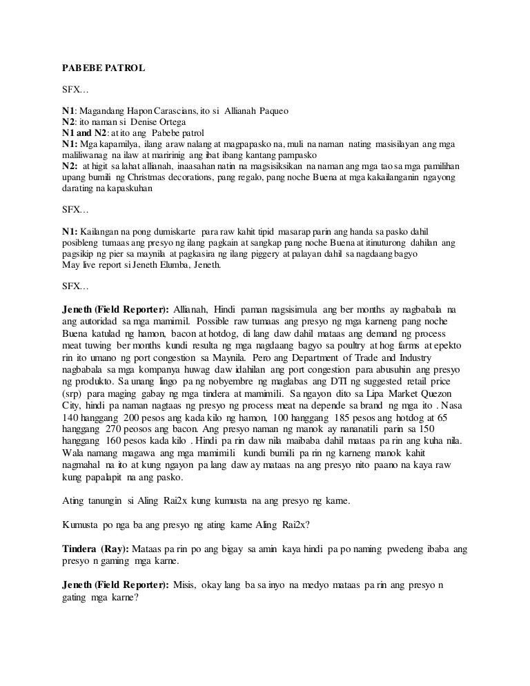 Ang Baguio ay isa sa mga pinupuntahan ng mga dayuhan at. SAMPLE SCRIPT RADIO NEWS BROADCAST. Si Neneng at ang Bagyo.